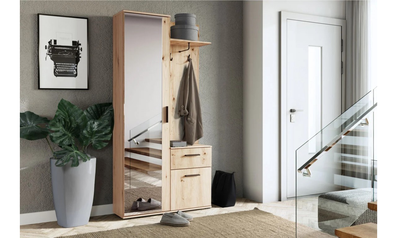 Garderobianka z lustrem, siedziskiem i wysuwanym wieszakiem BIS.