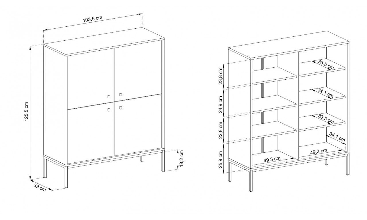 Komoda (prawa) z częścią przeszkloną, będąca jednym z elementów zestawu mebli ROMERO.