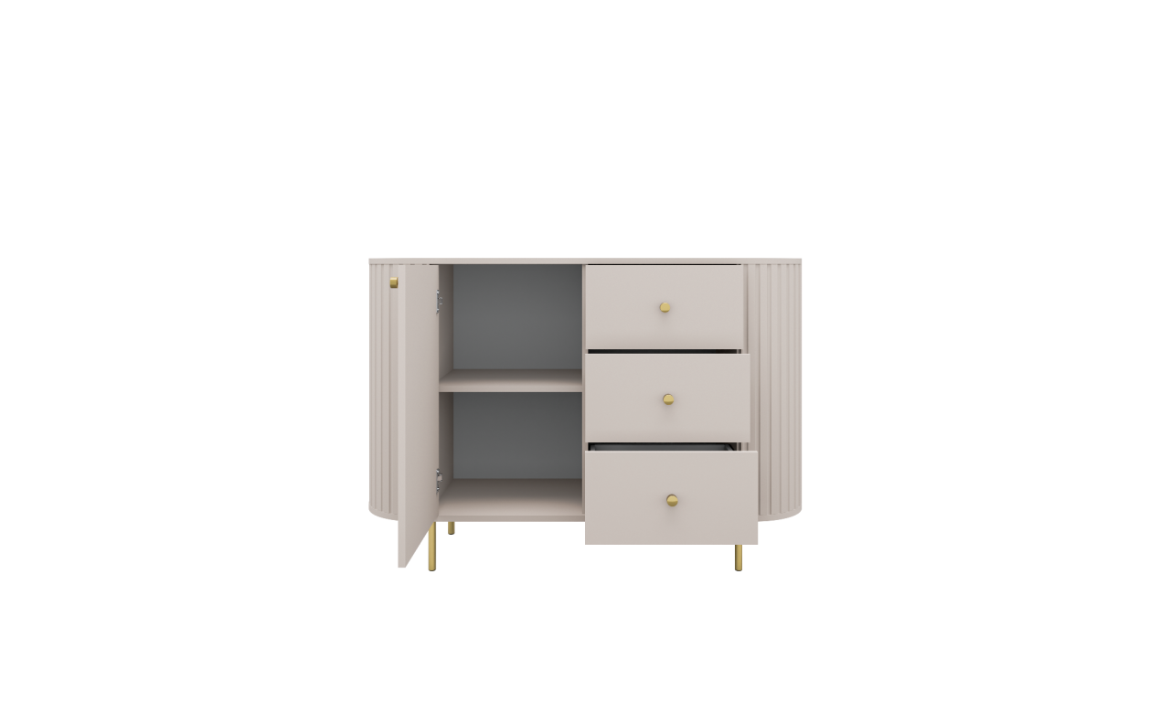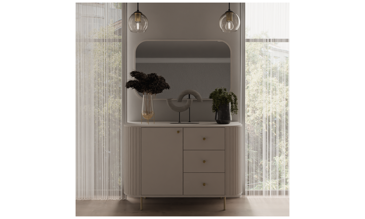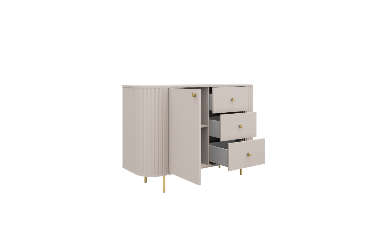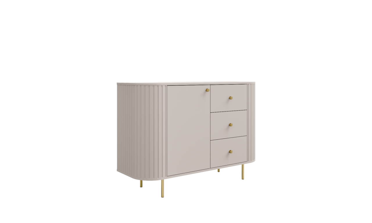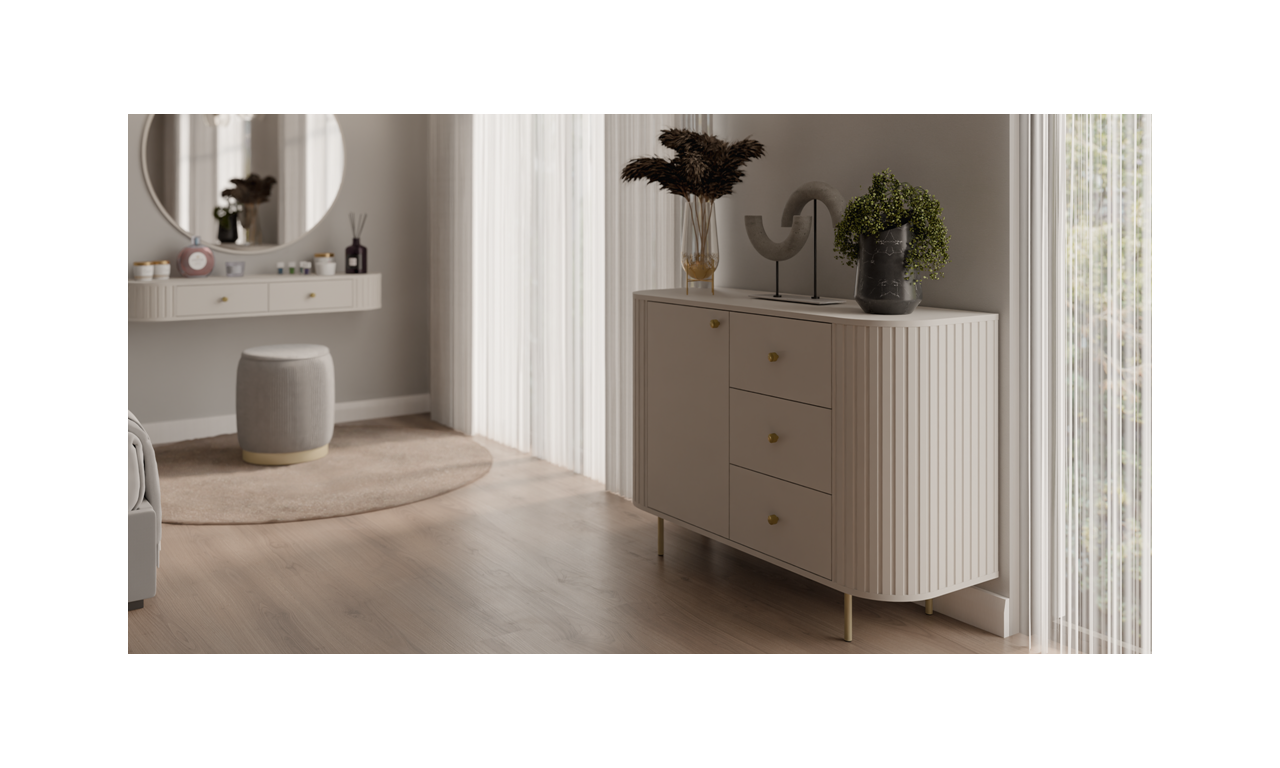 Beżowa, szeroka komoda z szufladami w stylu nowoczesnym Ovalio 823