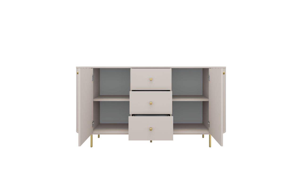 Szeroka trzydrzwiowa komoda będąca uzupełnieniem mebli systemu PARIS.