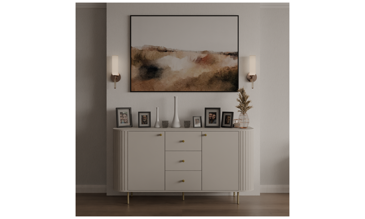 Szeroka komoda będąca jednym z elementów kolekcji mebli do salonu Karia.