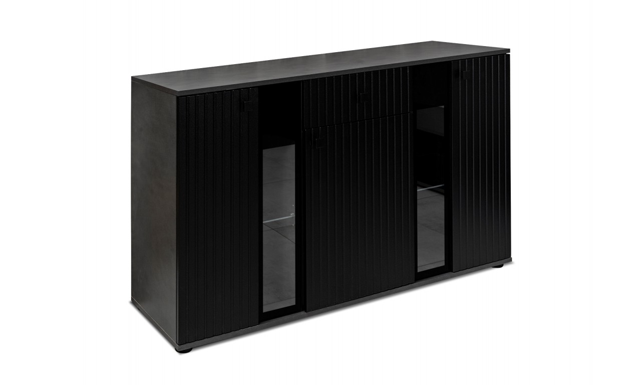 Czarna komoda z ryflowanym frontem, należąca do kolekcji mebli Nova.