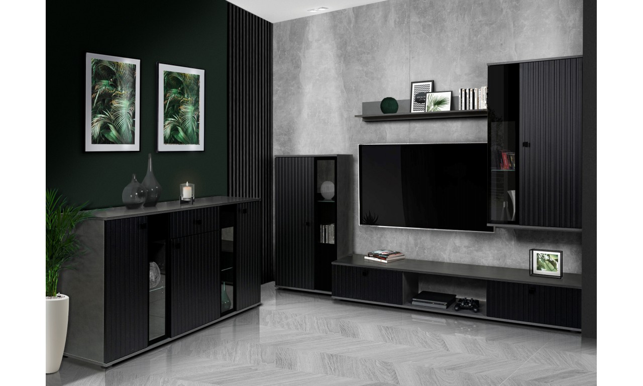 Czarno-grafitowa meblościanka z lamelami SALSA MDF BL/MAT