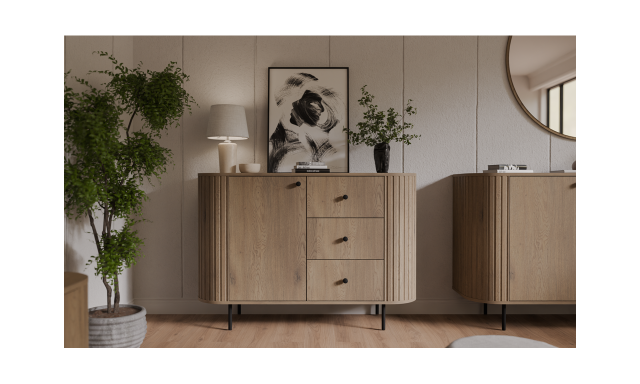 Meble do salonu i sypialni Ovalio w kolorystyce dąb cremona.