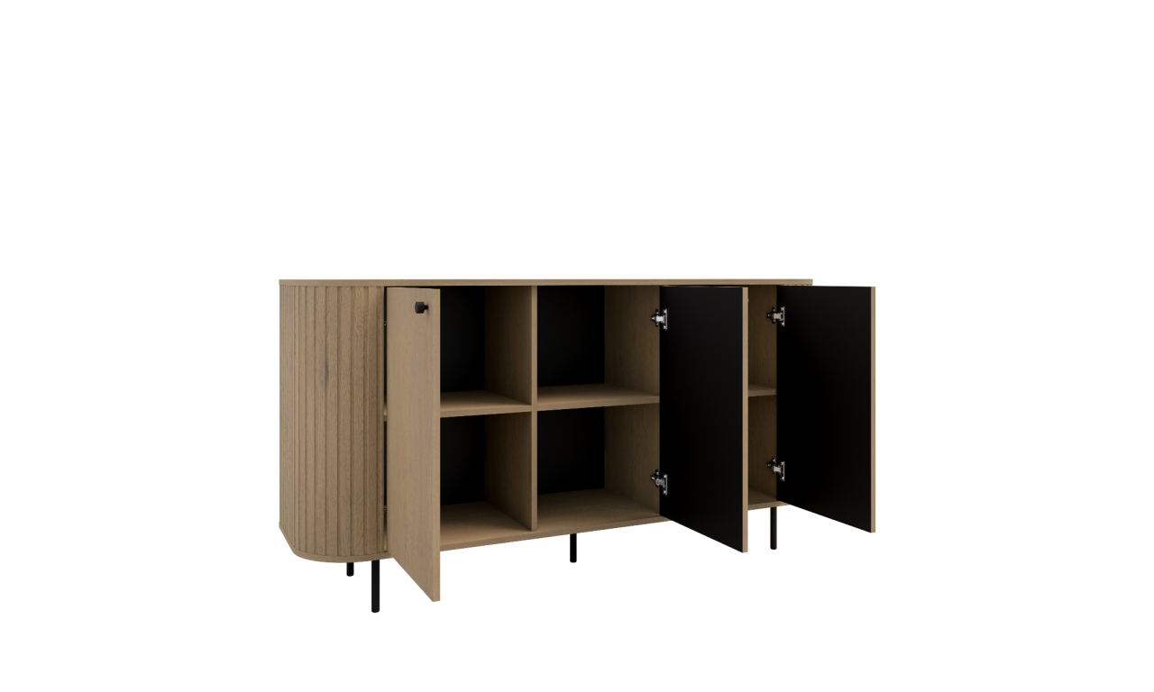 Duża komoda, będąca jednym z elementów systemu mebli Vegas, który dzięki ponad czterdziestu elementom można doskonale dopasować do salonu, biura czy sypialni.