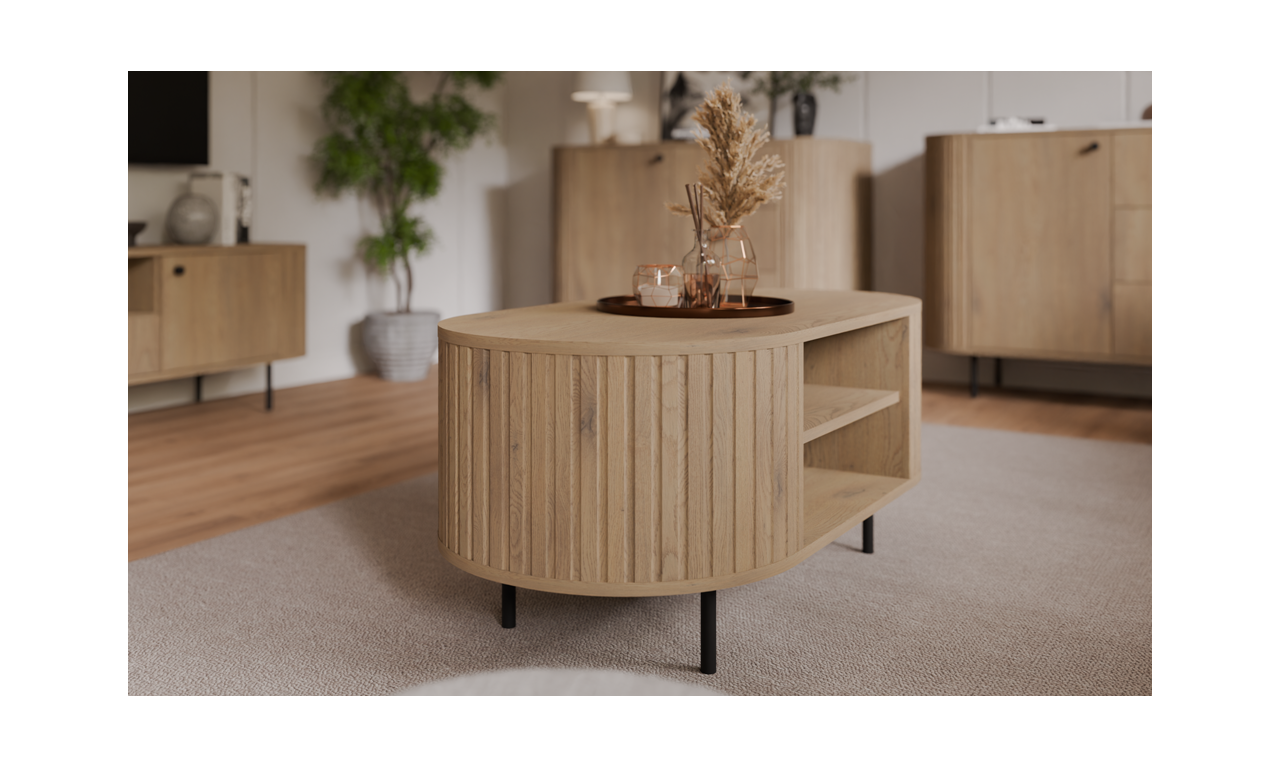 Meble do salonu i sypialni Ovalio w kolorystyce dąb cremona.