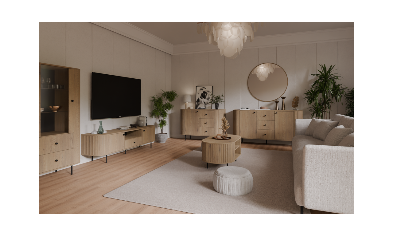 Meble do salonu i sypialni Ovalio w kolorystyce dąb cremona.
