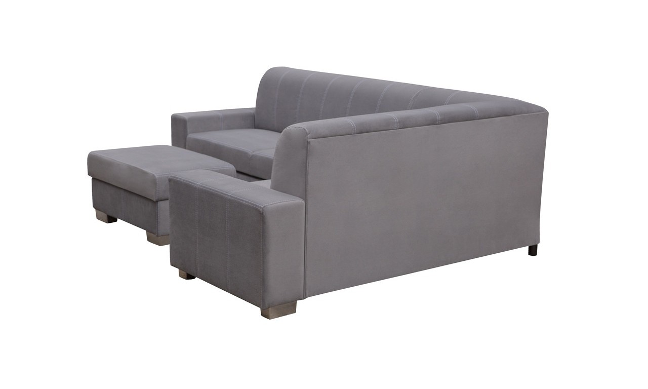 Klasyczny, jednokolorowy narożnik z pufą w komplecie.