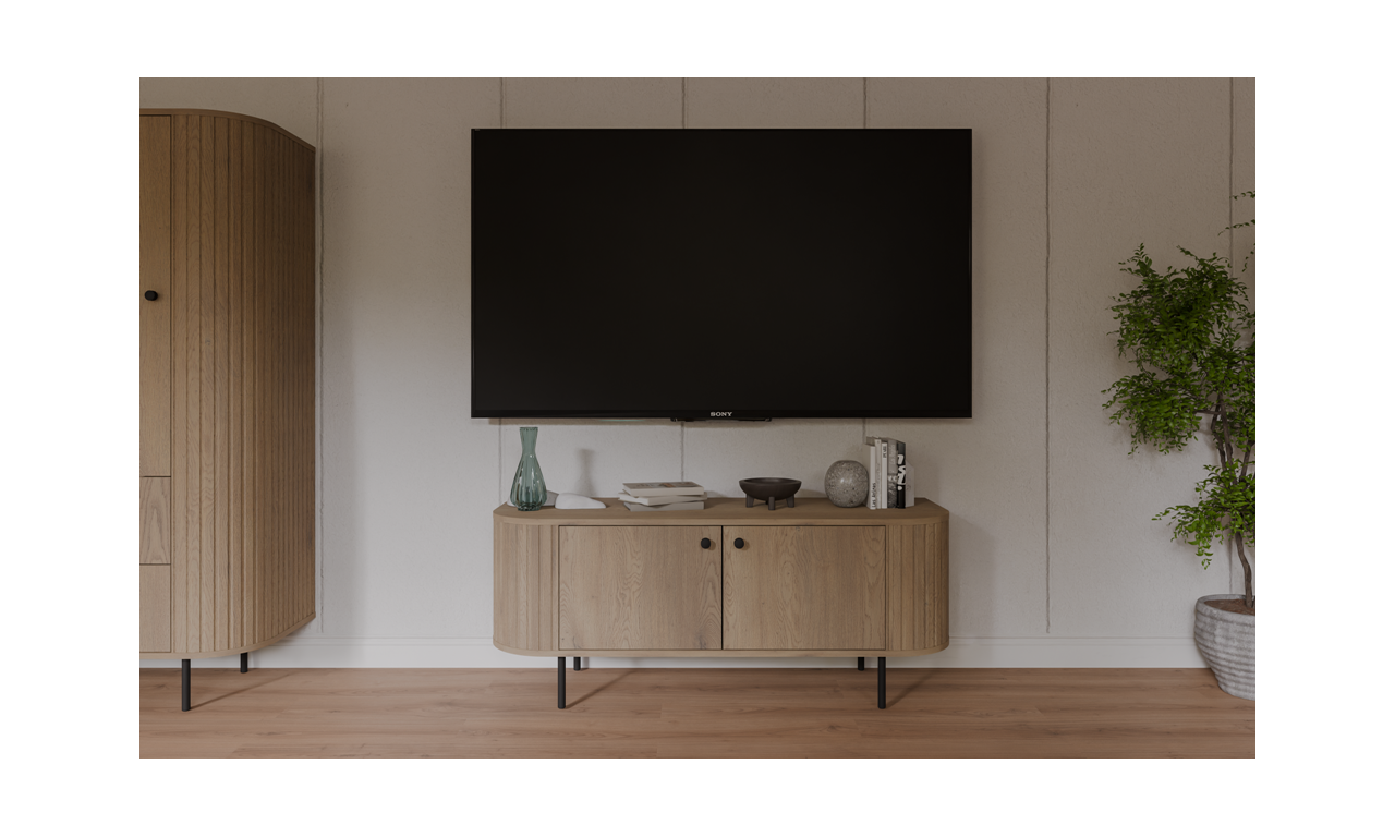 Stolik RTV będący jednym z elementów systemu mebli Amber, zaprojektowanych z myślą o urządzeniu salonu.