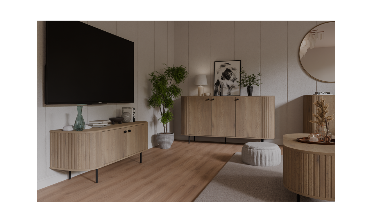 Meble do salonu i sypialni Ovalio w kolorystyce dąb cremona.
