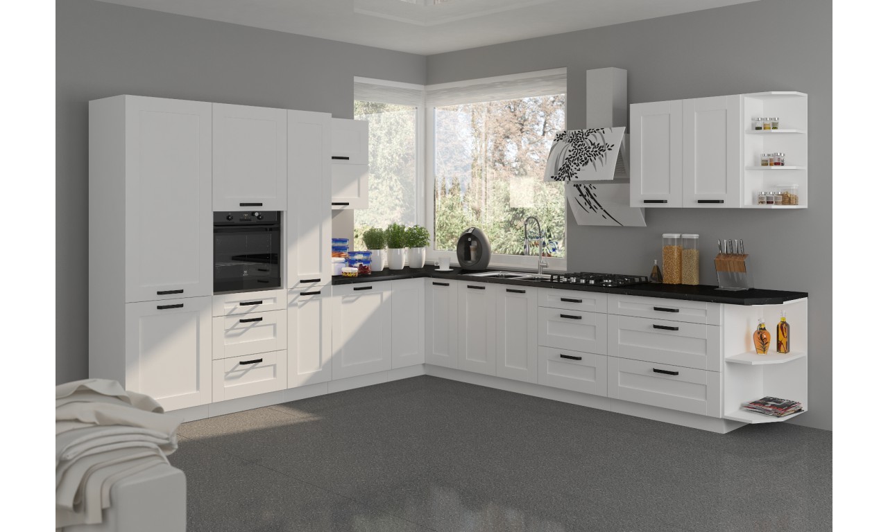 Szafka kuchenna pasująca do wszystkich kolekcji mebli kuchennych Luna z białymi korpusami.