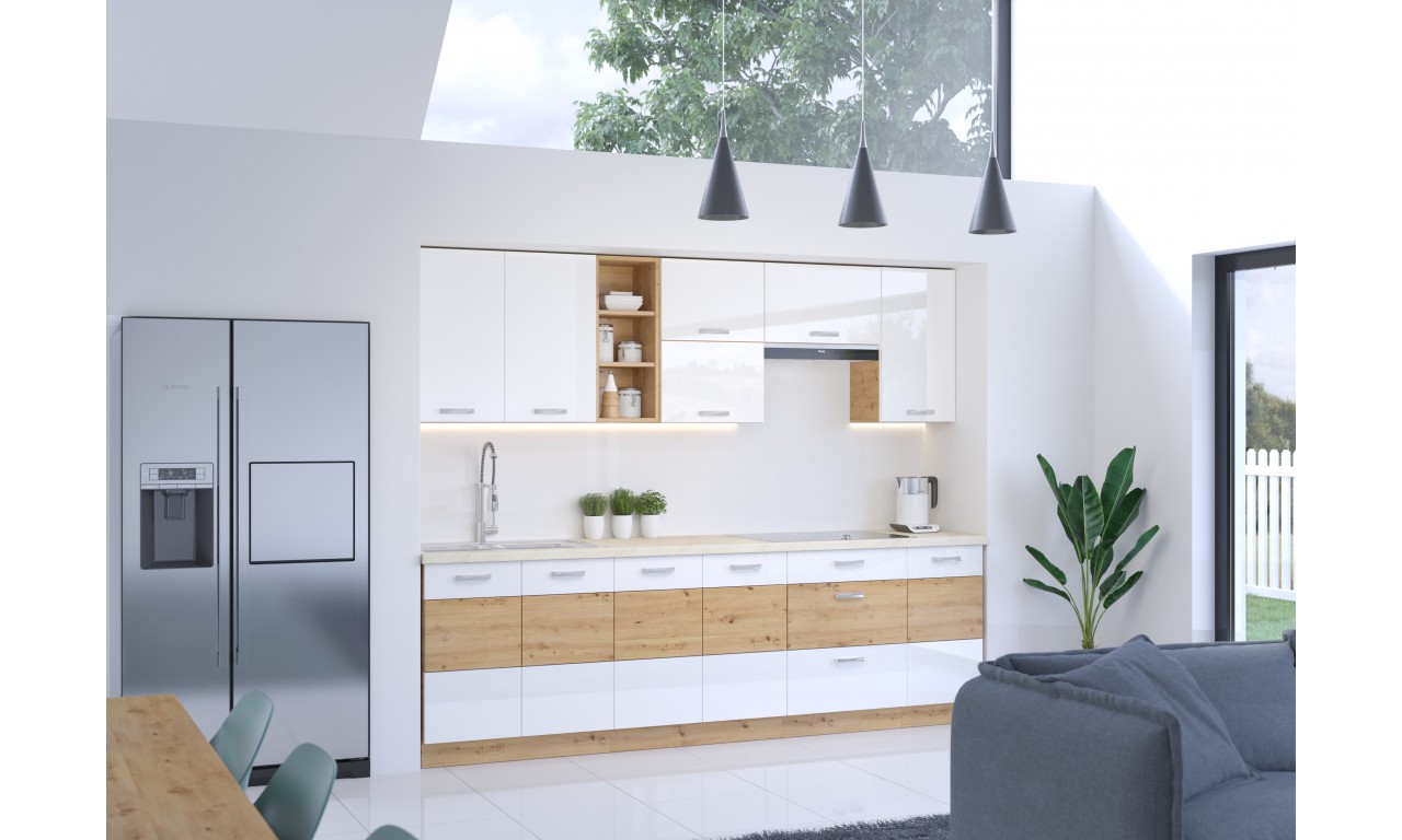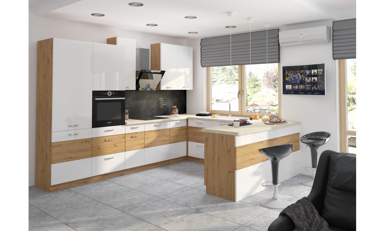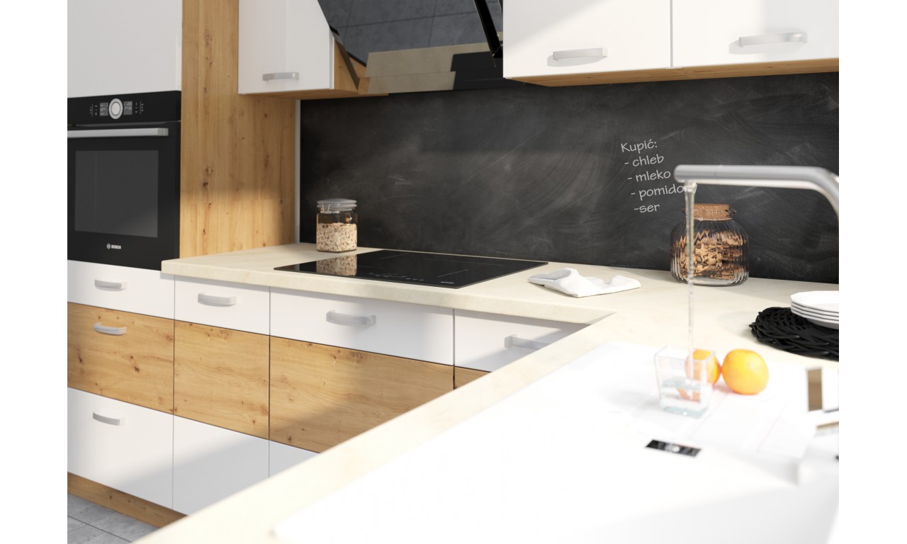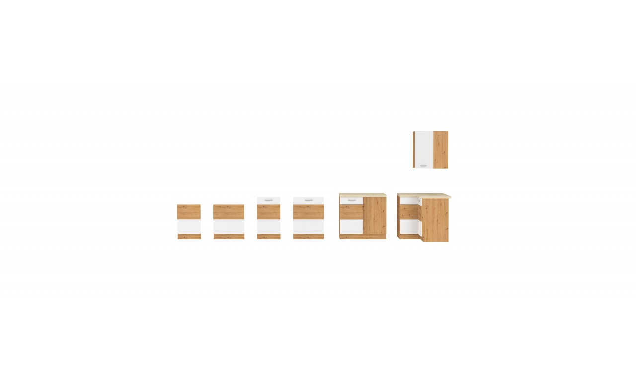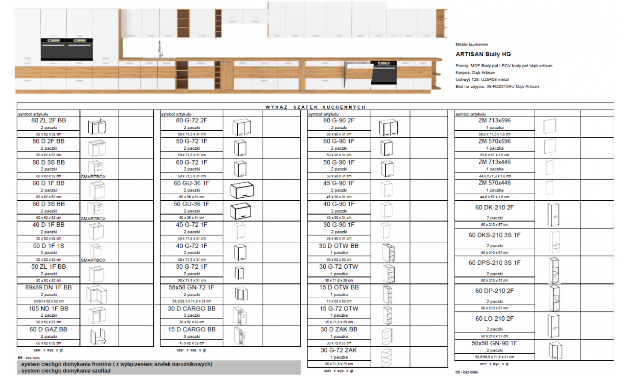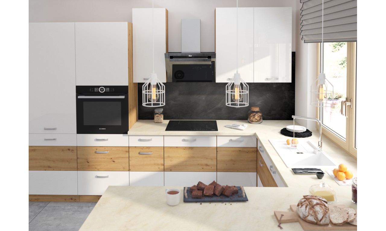 Szafka będąca jednym z elementów zestawu mebli kuchennych ARTISAN. Meble ARTISAN wykonano z płyty MDF (fronty) oraz płyty laminowanej (korpusy) a obrzeża wzmocniono dodatkowo trwałą i odporną okleiną PCV. Do każdego mebla dołączono uchwyty z tworzywa sztucznego. Pozostałe elementy mebli kuchennych ARTISAN znajdą Państwo poniżej w zakładce "POWIĄZANY PRODUKT". Na załączonych zdjęciach prezentujemy przykładowo kompozycje mebli ARTISAN. UWAGA: meble do samodzielnego montażu.