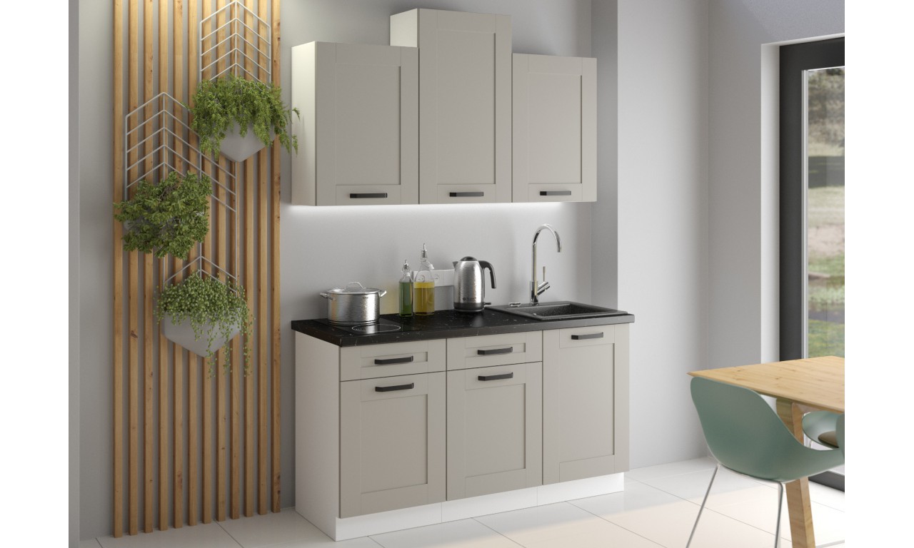 Zestaw mebli kuchennych należących do kolekcji LUNA claygrey/white.