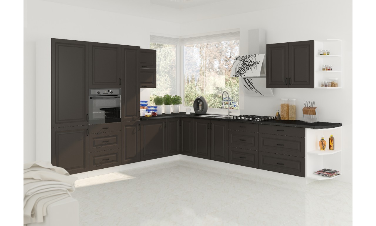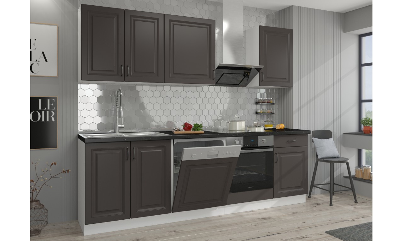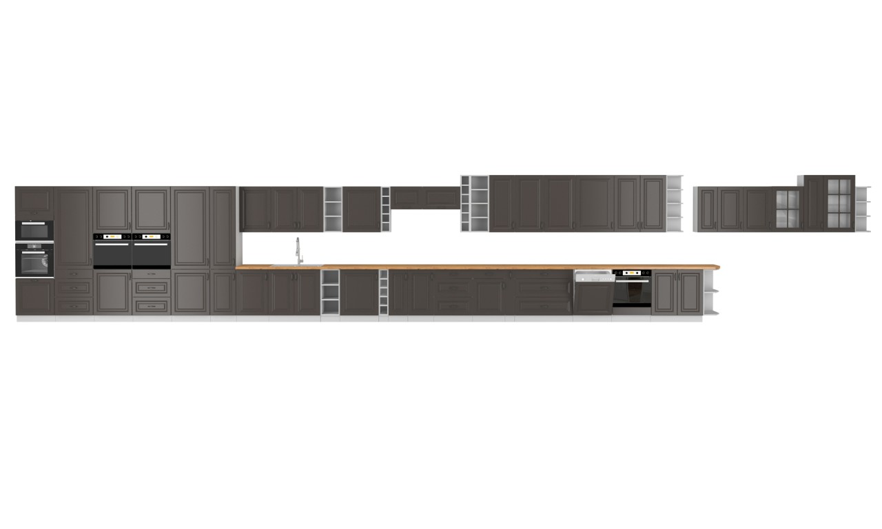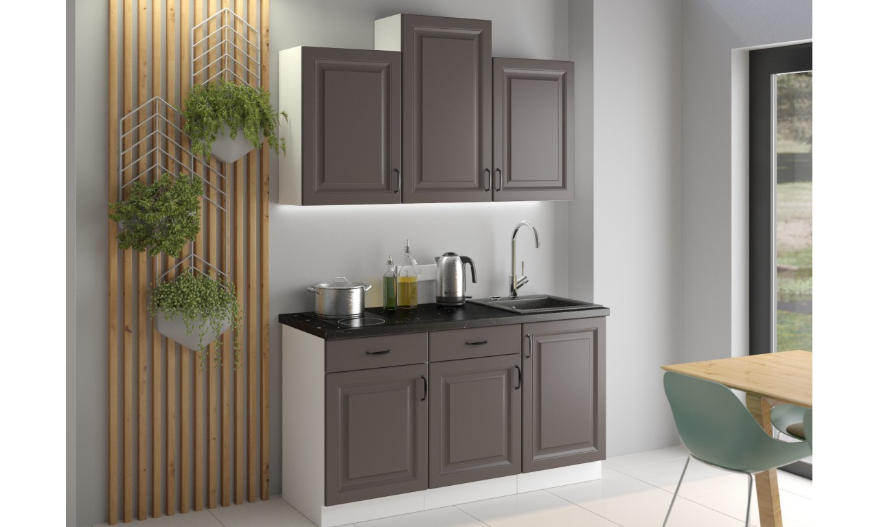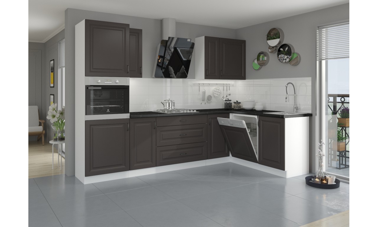Zestaw mebli kuchennych w stylu angielskim należących do kolekcji mebli kuchennych STILO GR/WH.