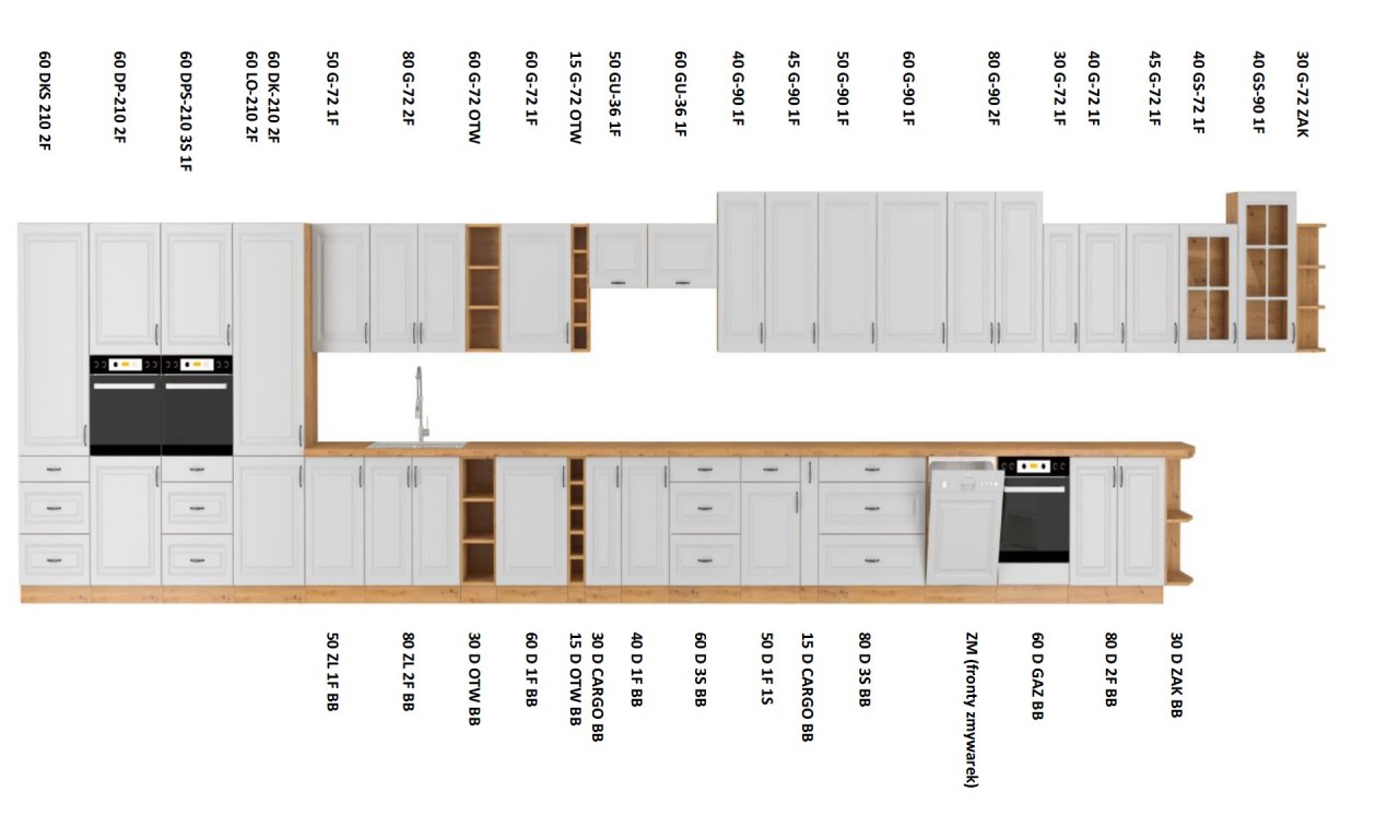 Zestaw mebli kuchennych w stylu angielskim należących do kolekcji mebli kuchennych STILO GR/AR.