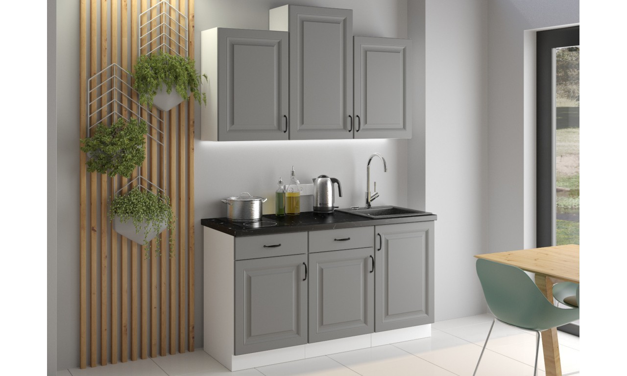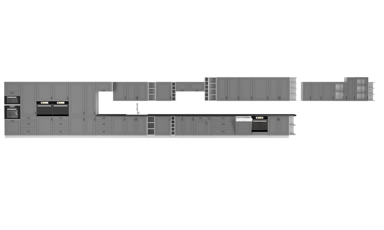 Zestaw mebli kuchennych w stylu angielskim należących do kolekcji mebli kuchennych STILO dustgrey/white.