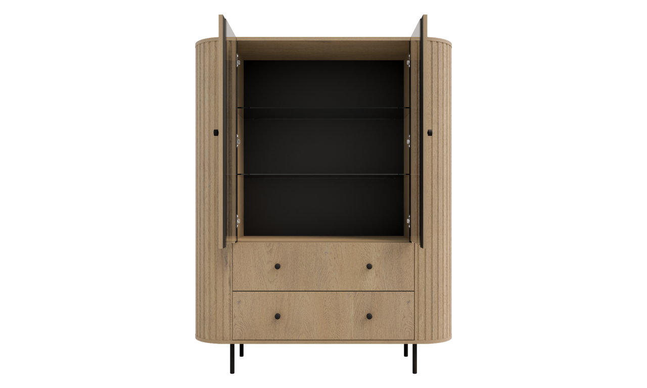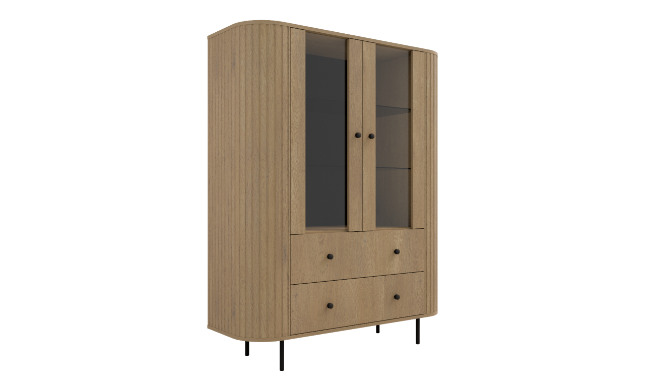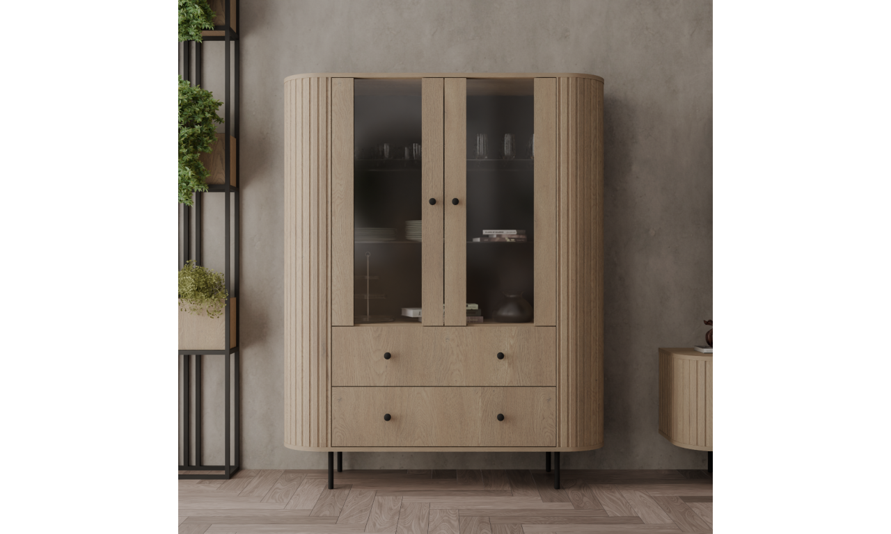 Wysoka witryna należąca do systemu mebli pokojowych Nordi.