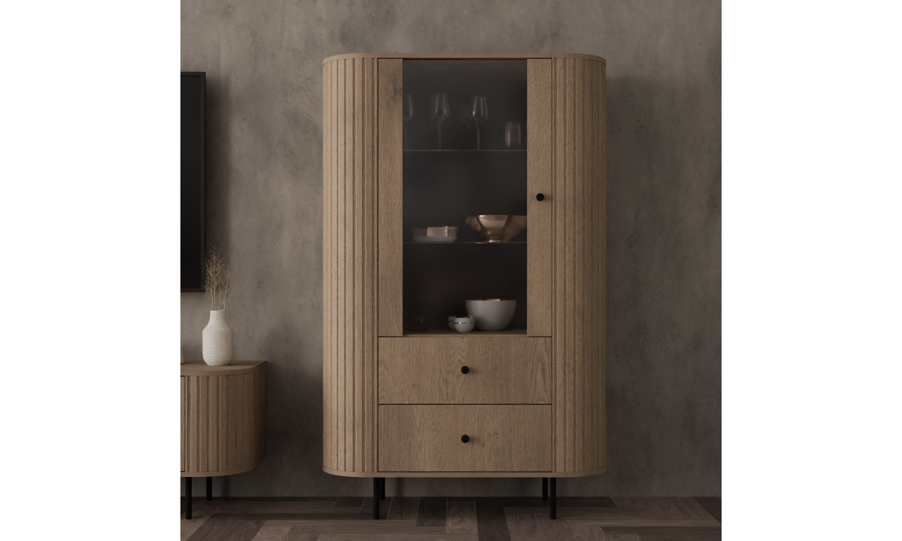 Witryna dostępna w dwóch propozycjach kolorystycznych, należąca do kolekcji mebli Madison.
