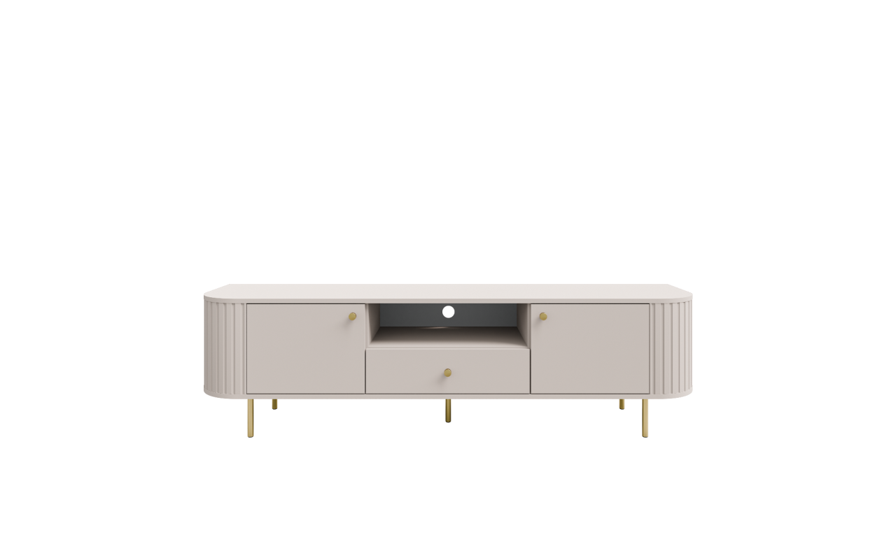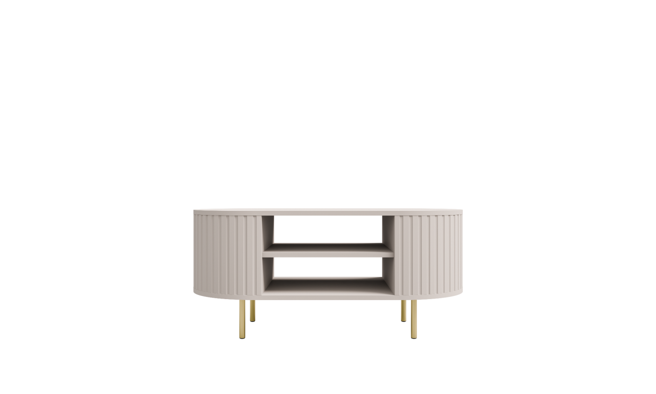 Meble do salonu i sypialni Ovalio w kolorystyce piaskowego beżu.