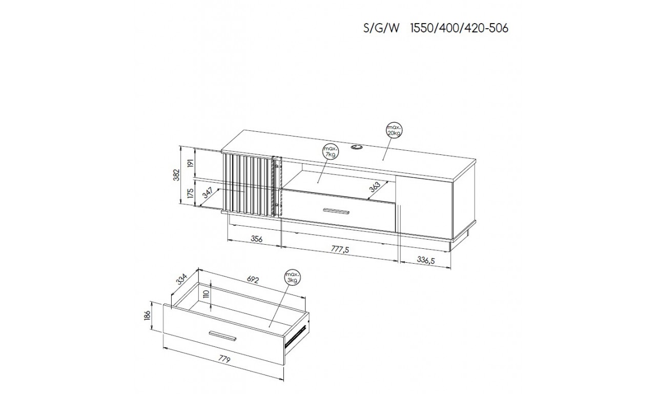 stolik RTV Palermo LA7 - w42-50,6/sz155/g40 cm.