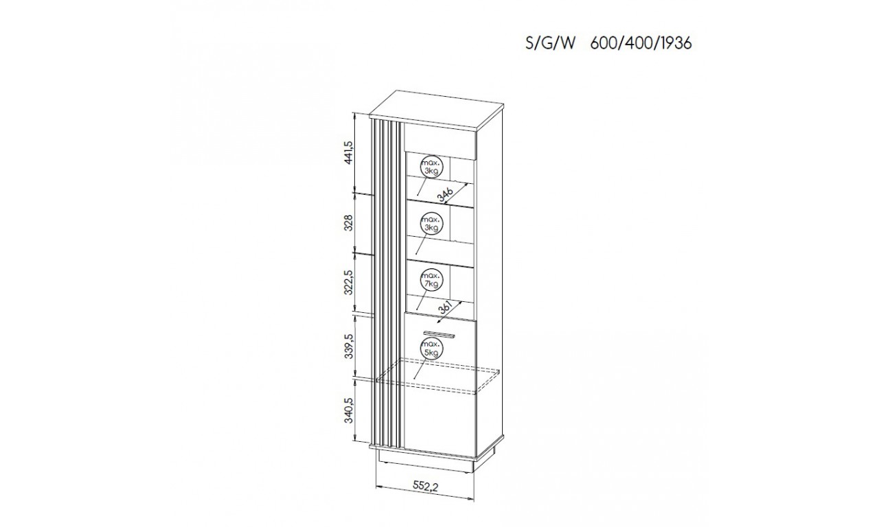 witryna Palermo LA2 - wysokość 193,6 cm; szerokość 60 cm; głębokość 40 cm