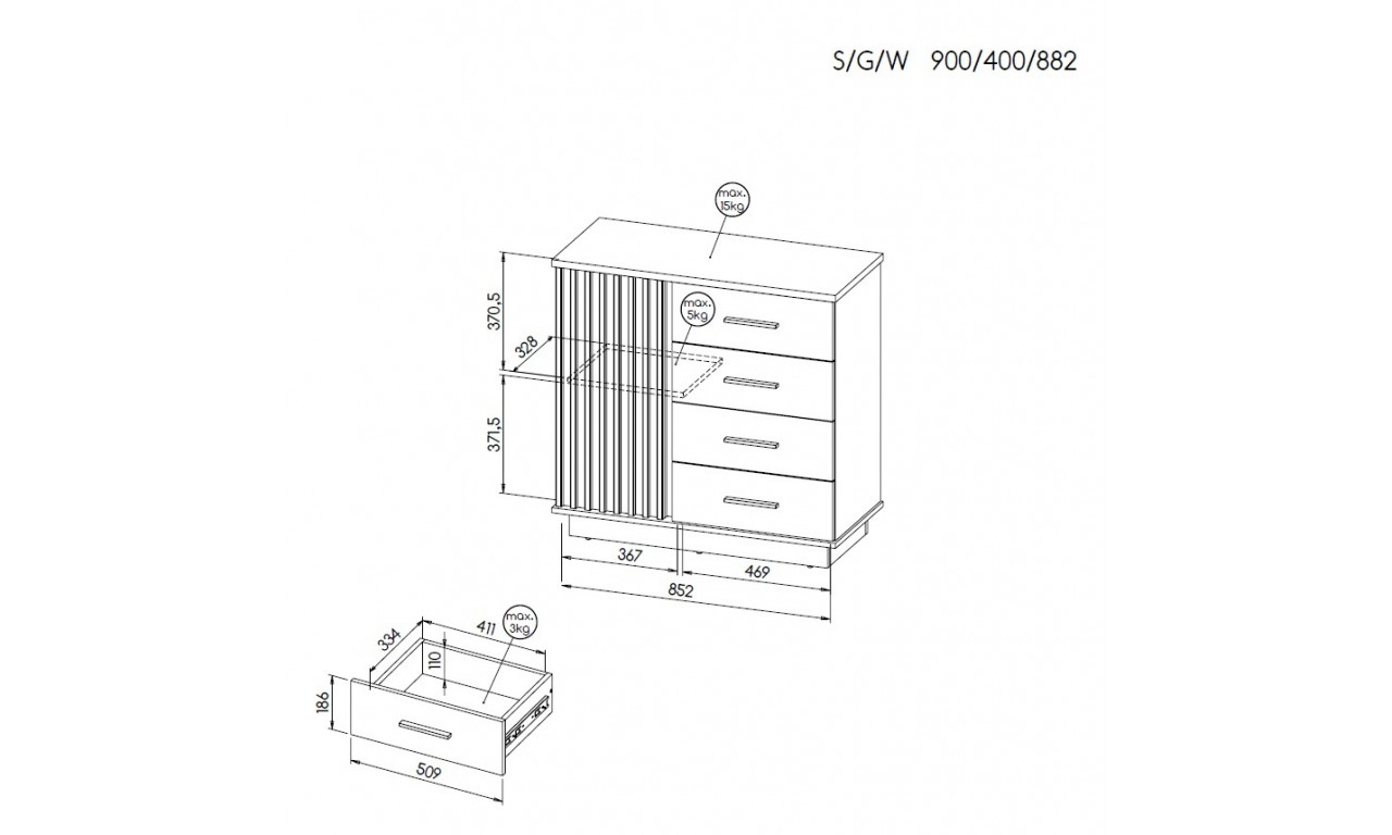 komoda Palermo LA5 - w88,2/sz90/g40 cm