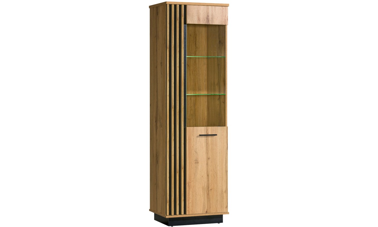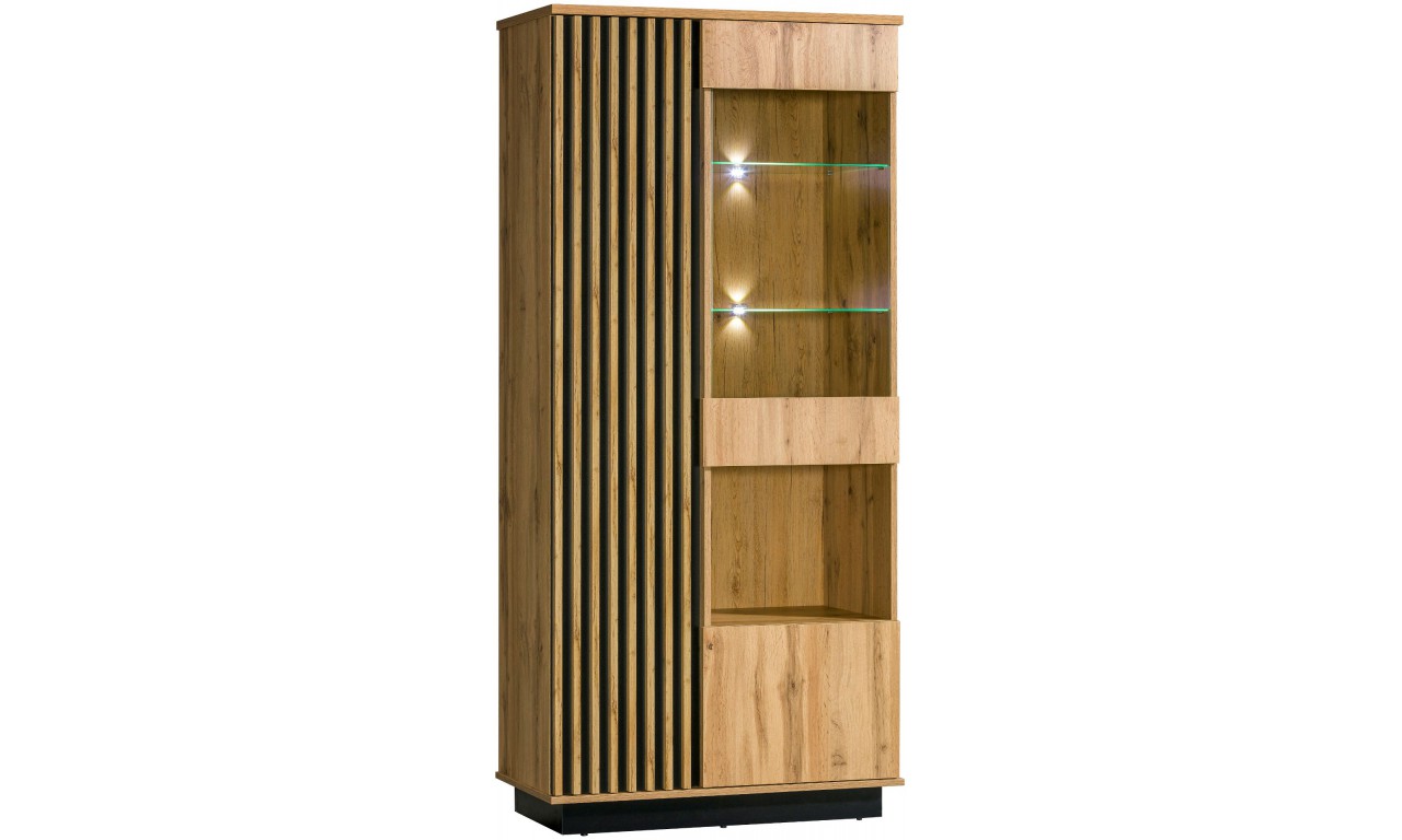 Witryny można doposażyć o podświetlenie LED szklanych półek. W trakcie składania zamówienia prosimy o zaznaczenie opcji dot. podświetlenia LED. Uwaga: meble do samodzielnego montażu.
