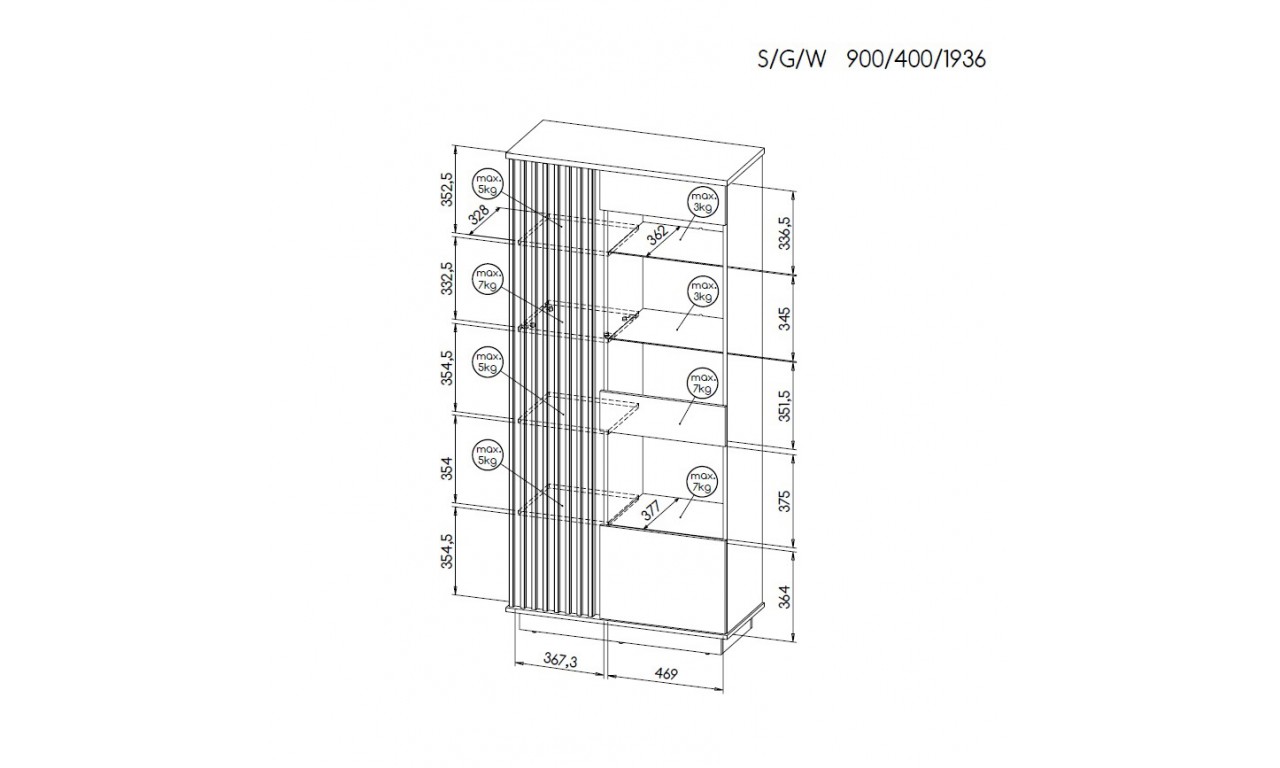 witryna Palermo LA2 - wysokość 193,6 cm; szerokość 60 cm; głębokość 40 cm