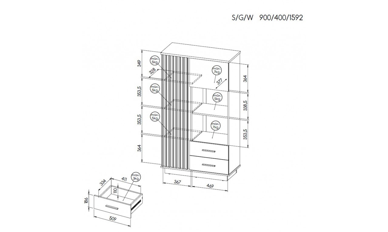 Meble Palermo, dzięki wielości i różnorodności brył, doskonale nadają się do wykorzystania przy urządzaniu salonu, biura a nawet jadalni. Stylistyka mebli Palermo to połączeniu nowoczesności z elementami loftowymi. Meble kolekcji Palermo wykonano z płyty laminowanej o grubości 16mm, pogrubionej na blatach do 22mm, w kolorystyce dąb wotan/czarny mat. Obrzeża zostały zabezpieczone trwałą i odporną okleiną typu PCV, szuflady zawieszono na prowadnicach kulkowych a elementy przeszklone wykonano z tzw. szkła hartowanego. Całość dopełniają ozdobne lamele wykonane z MDFu.