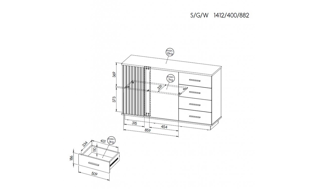 komoda Palermo LA6 - w88,2/sz141,2/g40 cm