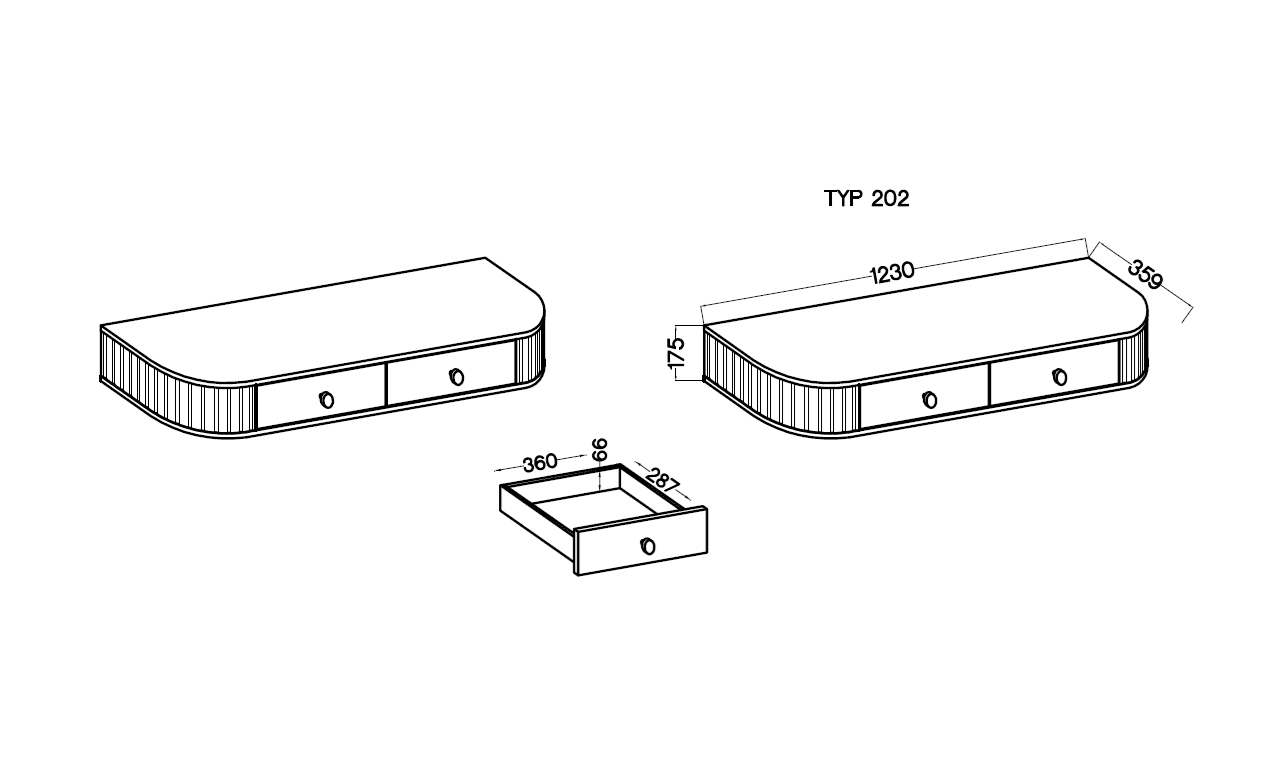 - toaletka OVALIO 202 - sz. 123 cm / g. 35,9 cm / w. 17,5 cm