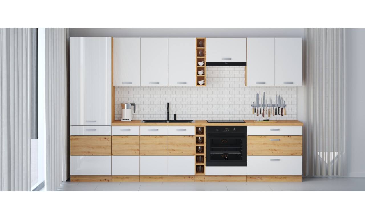 Zestaw mebli kuchennych z kolekcji LUNA utrzymany w kolorystyce white/artisan.